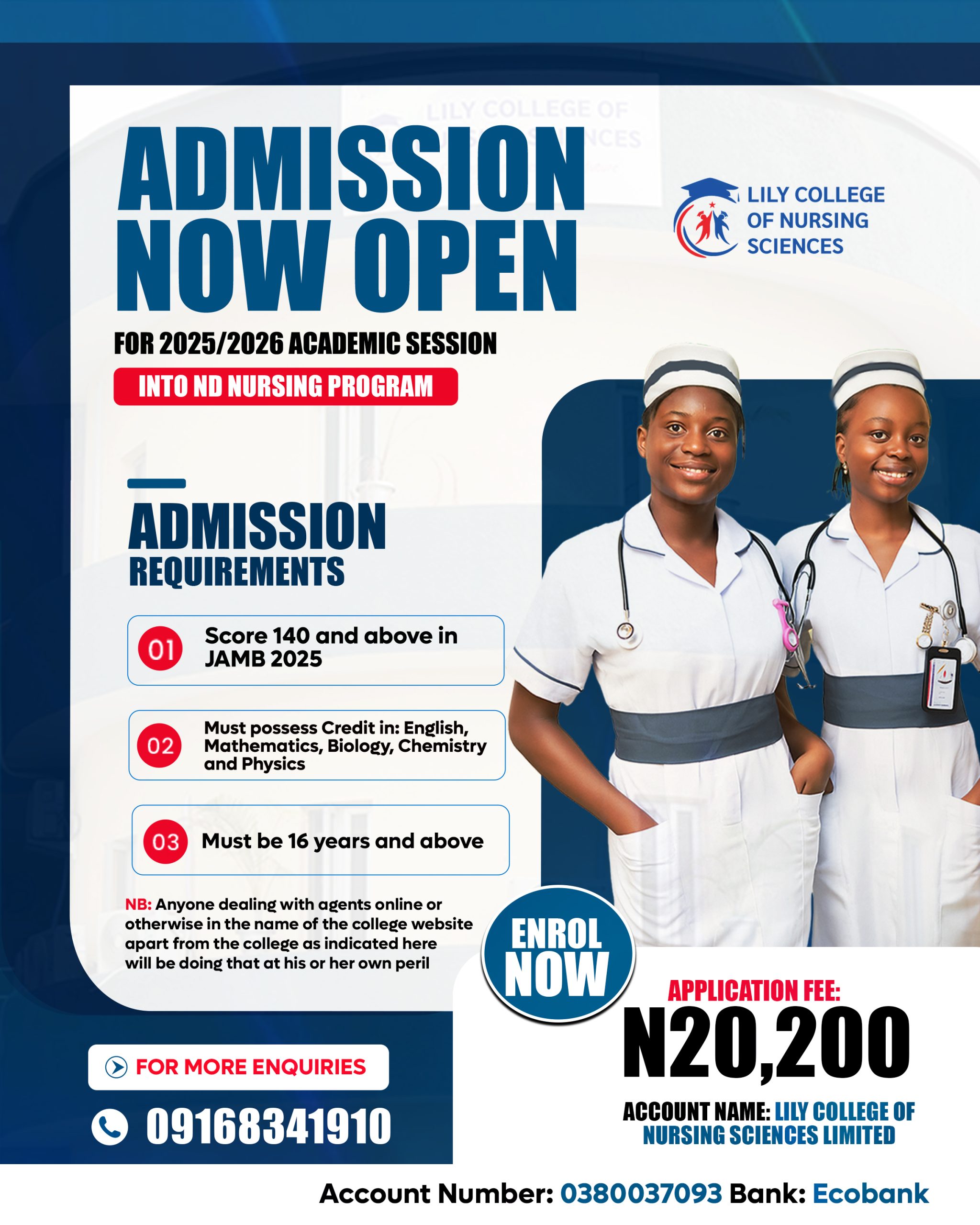 We are pleased to announce that admission into our National Diploma (N.D) Nursing Programme is now open!